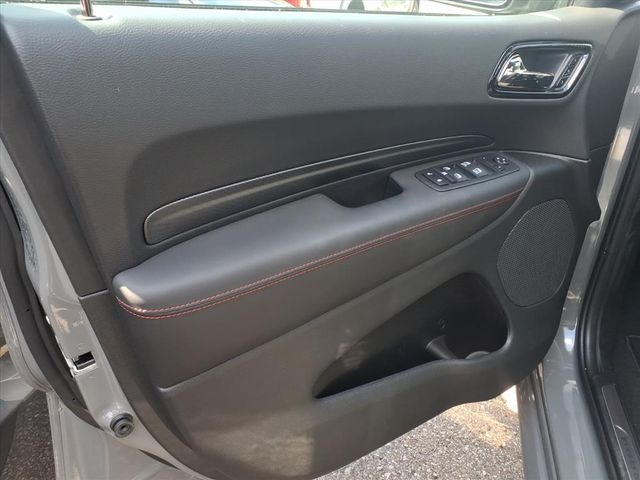Destroyer Gray Clearcoat 2025 Dodge Durango R/T Plus AWD 8-Speed Automatic HEMI 5.7L V8 Multi Displacement VVT 115V Auxiliary Power Outlet, 3.09 Rear Axle Ratio, 3rd row seats: split-bench, 4-Wheel Disc Brakes, 7 & 4 Pin Wiring Harness, 9 Speakers, ABS brakes, Adaptive Cruise Control w/Stop, Air Conditioning, Alloy wheels, AM/FM radio: SiriusXM w/360L, Apple CarPlay/Android Auto, Auto High Beam Headlamp Control, Auto-Dimming Exterior Driver Mirror, Auto-dimming Rear-View mirror, Auto-leveling suspension, Automatic temperature control, Black Roof Rails, Blacktop Package, Blind Spot w/Trailer Detection, Brake assist, Bumpers: body-color, Class IV Receiver Hitch, Cloth Bucket Seats w/Shift Insert, Compass, Delay-off headlights, Driver door bin, Driver vanity mirror, Dual front impact airbags, Dual front side impact airbags, Dual Remote USB Port - Charge Only, Electronic Stability Control, Emergency communication system: Dodge Connect, Exterior Mirrors w/Heating Element, Exterior Mirrors w/Memory, Exterior Mirrors w/Supplemental Signals, Floor Console w/Leather Armrest, Four wheel independent suspension, Front anti-roll bar, Front Bucket Seats, Front Center Armrest w/Storage, Front dual zone A/C, Front reading lights, Full Speed Forward Collision Warning Plus, Fully automatic headlights, Garage door transmitter, Gloss Black Badges, Gloss Black Exterior Mirrors, Heated door mirrors, Heated front seats, Heated Second Row Seats, Heated steering wheel, Illuminated entry, Integrated Roof Rail Crossbars, Knee airbag, Leather steering wheel, Leather Trimmed Bucket Seats, Leather Wrapped Door Panels, LED Auxiliary Low Beam & Turn Signal, Low tire pressure warning, Navigation System, Occupant sensing airbag, Outside temperature display, Overhead airbag, Overhead console, Panic alarm, ParkView Rear Back-Up Camera, Passenger door bin, Passenger vanity mirror, Power 6x9 Multi-Function Foldaway Mirrors, Power 8-Way Driver Memory 8-Way Passenger Seats, Power door mirrors, Power driver seat, Power Driver/Passenger 4-Way Lumbar Adjust, Power Liftgate, Power steering, Power Sunroof, Power Tilt & Telescopic Steering Column, Power windows, Quick Order Package 22T R/T Plus, Radio data system, Radio: Uconnect 5 Nav w/10.1" Display, Radio/Driver Seat/Mirrors Memory, Rain sensing wipers, Rear air conditioning, Rear anti-roll bar, Rear Load Leveling Suspension, Rear reading lights, Rear seat center armrest, Rear window defroster, Rear window wiper, Red Accent Stitching, Remote keyless entry, Satin Black Dodge Tail Lamp Badge, Security system, Speed control, Speed-sensing steering, Speed-Sensitive Wipers, Split folding rear seat, Spoiler, Sport steering wheel, Steering wheel mounted audio controls, Tachometer, Telescoping steering wheel, Tilt steering wheel, Traction control, Trailer Brake Control, Trip computer, Variably intermittent wipers, Ventilated Front Seats, Voltmeter, Wheels: 20" x 8.0" Black Noise Aluminum, Wheels: 20" x 8.0" Fine Silver.
