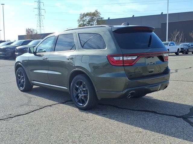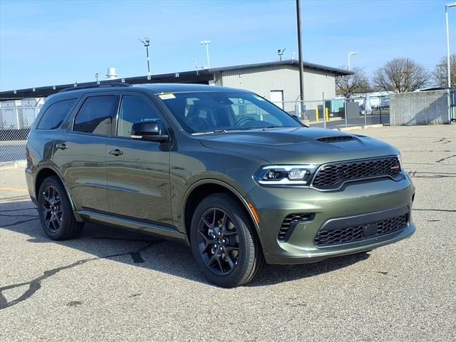 Green Machine 2026 Dodge Durango GT Plus HEMI V8 AWD 8-Speed Automatic HEMI 5.7L V8 Multi Displacement VVT 115V Auxiliary Power Outlet, 3.09 Rear Axle Ratio, 3rd row seats: split-bench, 4-Wheel Disc Brakes, 7 and 4 Pin Wiring Harness, 9 Speakers, ABS brakes, Adaptive Cruise Control with Stop, Air Conditioning, Alloy wheels, AM/FM radio: SiriusXM w/360L, Apple CarPlay/Android Auto, Auto High Beam Headlamp Control, Auto-Dimming Exterior Driver Mirror, Auto-dimming Rear-View mirror, Auto-leveling suspension, Automatic temperature control, Black Roof Rails, Blacktop Package, Blind Spot with Trailer Detection, Brake assist, Bumpers: body-color, Class IV Receiver Hitch, Cloth Bucket Seats with Shift Insert, Compass, Delay-off headlights, Driver door bin, Driver vanity mirror, Dual front impact airbags, Dual front side impact airbags, Dual Remote USB Port - Charge Only, Electronic Stability Control, Emergency communication system: Dodge Connect, Exterior Mirrors with Heating Element, Exterior Mirrors with Memory, Exterior Mirrors with Supplemental Signals, Floor Console with Leather Armrest, Four wheel independent suspension, Front anti-roll bar, Front Bucket Seats, Front Center Armrest w/Storage, Front dual zone A/C, Front reading lights, Full Speed Forward Collision Warning Plus, Fully automatic headlights, Garage door transmitter, Gloss Black Badges, Gloss Black Exterior Mirrors, Heated door mirrors, Heated front seats, Heated Second Row Seats, Heated steering wheel, Illuminated entry, Integrated Roof Rail Crossbars, Knee airbag, Leather steering wheel, Leather Trimmed Bucket Seats, Leather Wrapped Door Panels, LED Auxiliary Low Beam and Turn Signal, Low tire pressure warning, Navigation System, Occupant sensing airbag, Outside temperature display, Overhead airbag, Overhead console, Panic alarm, ParkView Rear Back-Up Camera, Passenger door bin, Passenger vanity mirror, Power 6x9 Multi-Function Foldaway Mirrors, Power 8-Way Driver Memory 8-Way Passenger Seats, Power door mirrors, Power driver seat, Power Driver/Passenger 4-Way Lumbar Adjust, Power Liftgate, Power steering, Power Sunroof, Power Tilt and Telescopic Steering Column, Power windows, Quick Order Package 22T GT Plus, Radio data system, Radio: Uconnect 5 Nav with 10.1" Display, Radio/Driver Seat/Mirrors Memory, Rain sensing wipers, Rear air conditioning, Rear anti-roll bar, Rear Load Leveling Suspension, Rear reading lights, Rear seat center armrest, Rear window defroster, Rear window wiper, Red Accent Stitching, Remote keyless entry, Satin Black Dodge Tail Lamp Badge, Security system, Speed control, Speed-sensing steering, Speed-Sensitive Wipers, Split folding rear seat, Spoiler, Sport steering wheel, Steering wheel mounted audio controls, Tachometer, Telescoping steering wheel, Tilt steering wheel, Traction control, Trailer Brake Control, Trip computer, Variably intermittent wipers, Ventilated Front Seats, Voltmeter, Wheels: 20" x 8" Black Noise Split 5-Spoke, Wheels: 20" x 8" Satin Carbon Split 5-Spoke.