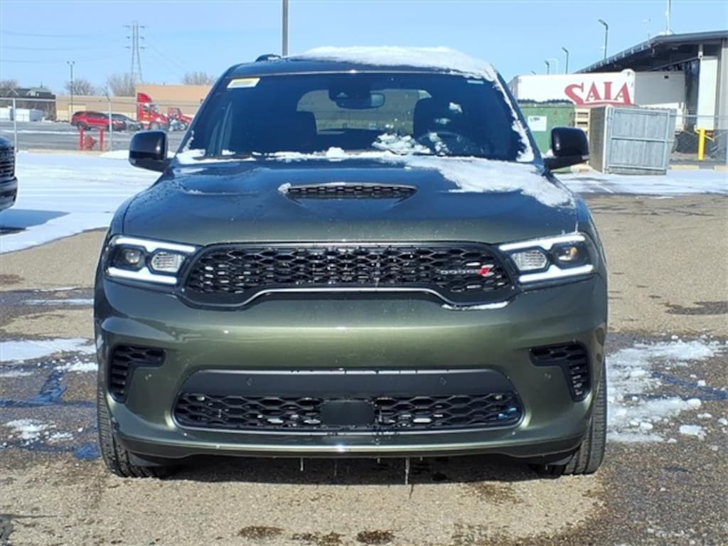Green Machine 2026 Dodge Durango GT Plus HEMI V8 AWD 8-Speed Automatic HEMI 5.7L V8 Multi Displacement VVT AWD, 115V Auxiliary Power Outlet, 3.09 Rear Axle Ratio, 3rd row seats: split-bench, 4-Wheel Disc Brakes, 7 & 4 Pin Wiring Harness, 9 Speakers, ABS brakes, Adaptive Cruise Control w/Stop, Air Conditioning, Alloy wheels, AM/FM radio: SiriusXM w/360L, Apple CarPlay/Android Auto, Auto High Beam Headlamp Control, Auto-Dimming Exterior Driver Mirror, Auto-dimming Rear-View mirror, Auto-leveling suspension, Automatic temperature control, Black Roof Rails, Blacktop Package, Blind Spot w/Trailer Detection, Brake assist, Bumpers: body-color, Class IV Receiver Hitch, Cloth Bucket Seats w/Shift Insert, Compass, Delay-off headlights, Driver door bin, Driver vanity mirror, Dual front impact airbags, Dual front side impact airbags, Dual Remote USB Port - Charge Only, Electronic Stability Control, Emergency communication system: Dodge Connect, Exterior Mirrors w/Heating Element, Exterior Mirrors w/Memory, Exterior Mirrors w/Supplemental Signals, Floor Console w/Leather Armrest, Four wheel independent suspension, Front anti-roll bar, Front Bucket Seats, Front Center Armrest w/Storage, Front dual zone A/C, Front reading lights, Full Speed Forward Collision Warning Plus, Fully automatic headlights, Garage door transmitter, Gloss Black Badges, Gloss Black Exterior Mirrors, Heated door mirrors, Heated front seats, Heated Second Row Seats, Heated steering wheel, Illuminated entry, Integrated Roof Rail Crossbars, Knee airbag, Leather steering wheel, Leather Trimmed Bucket Seats, Leather Wrapped Door Panels, LED Auxiliary Low Beam & Turn Signal, Low tire pressure warning, Navigation System, Occupant sensing airbag, Outside temperature display, Overhead airbag, Overhead console, Panic alarm, ParkView Rear Back-Up Camera, Passenger door bin, Passenger vanity mirror, Power 6x9 Multi-Function Foldaway Mirrors, Power 8-Way Driver Memory 8-Way Passenger Seats, Power door mirrors, Power driver seat, Power Driver/Passenger 4-Way Lumbar Adjust, Power Liftgate, Power steering, Power Sunroof, Power Tilt & Telescopic Steering Column, Power windows, Quick Order Package 22T GT Plus, Radio data system, Radio: Uconnect 5 Nav w/10.1" Display, Radio/Driver Seat/Mirrors Memory, Rain sensing wipers, Rear air conditioning, Rear anti-roll bar, Rear Load Leveling Suspension, Rear reading lights, Rear seat center armrest, Rear window defroster, Rear window wiper, Red Accent Stitching, Remote keyless entry, Satin Black Dodge Tail Lamp Badge, Security system, Speed control, Speed-sensing steering, Speed-Sensitive Wipers, Split folding rear seat, Spoiler, Sport steering wheel, Steering wheel mounted audio controls, Tachometer, Telescoping steering wheel, Tilt steering wheel, Traction control, Trailer Brake Control, Trip computer, Variably intermittent wipers, Ventilated Front Seats, Voltmeter, Wheels: 20" x 8" Black Noise Split 5-Spoke, Wheels: 20" x 8" Satin Carbon Split 5-Spoke, AWD. Price includes: $1500 - 2026 Midwest BC Regional Bonus Cash . Exp. 01/05/2026