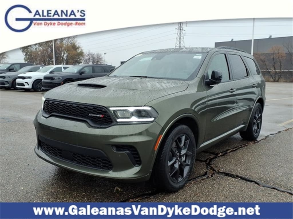 Green Machine 2026 Dodge Durango GT Plus HEMI V8 AWD 8-Speed Automatic HEMI 5.7L V8 Multi Displacement VVT AWD, 115V Auxiliary Power Outlet, 3.09 Rear Axle Ratio, 3rd row seats: split-bench, 4-Wheel Disc Brakes, 7 & 4 Pin Wiring Harness, 9 Speakers, ABS brakes, Adaptive Cruise Control w/Stop, Air Conditioning, Alloy wheels, AM/FM radio: SiriusXM w/360L, Apple CarPlay/Android Auto, Auto High Beam Headlamp Control, Auto-Dimming Exterior Driver Mirror, Auto-dimming Rear-View mirror, Auto-leveling suspension, Automatic temperature control, Black Roof Rails, Blacktop Package, Blind Spot w/Trailer Detection, Brake assist, Bumpers: body-color, Class IV Receiver Hitch, Cloth Bucket Seats w/Shift Insert, Compass, Delay-off headlights, Driver door bin, Driver vanity mirror, Dual front impact airbags, Dual front side impact airbags, Dual Remote USB Port - Charge Only, Electronic Stability Control, Emergency communication system: Dodge Connect, Exterior Mirrors w/Heating Element, Exterior Mirrors w/Memory, Exterior Mirrors w/Supplemental Signals, Floor Console w/Leather Armrest, Four wheel independent suspension, Front anti-roll bar, Front Bucket Seats, Front Center Armrest w/Storage, Front dual zone A/C, Front reading lights, Full Speed Forward Collision Warning Plus, Fully automatic headlights, Garage door transmitter, Gloss Black Badges, Gloss Black Exterior Mirrors, Heated door mirrors, Heated front seats, Heated Second Row Seats, Heated steering wheel, Illuminated entry, Integrated Roof Rail Crossbars, Knee airbag, Leather steering wheel, Leather Trimmed Bucket Seats, Leather Wrapped Door Panels, LED Auxiliary Low Beam & Turn Signal, Low tire pressure warning, Navigation System, Occupant sensing airbag, Outside temperature display, Overhead airbag, Overhead console, Panic alarm, ParkView Rear Back-Up Camera, Passenger door bin, Passenger vanity mirror, Power 6x9 Multi-Function Foldaway Mirrors, Power 8-Way Driver Memory 8-Way Passenger Seats, Power door mirrors, Power driver seat, Power Driver/Passenger 4-Way Lumbar Adjust, Power Liftgate, Power steering, Power Sunroof, Power Tilt & Telescopic Steering Column, Power windows, Quick Order Package 22T GT Plus, Radio data system, Radio: Uconnect 5 Nav w/10.1" Display, Radio/Driver Seat/Mirrors Memory, Rain sensing wipers, Rear air conditioning, Rear anti-roll bar, Rear Load Leveling Suspension, Rear reading lights, Rear seat center armrest, Rear window defroster, Rear window wiper, Red Accent Stitching, Remote keyless entry, Satin Black Dodge Tail Lamp Badge, Security system, Speed control, Speed-sensing steering, Speed-Sensitive Wipers, Split folding rear seat, Spoiler, Sport steering wheel, Steering wheel mounted audio controls, Tachometer, Telescoping steering wheel, Tilt steering wheel, Traction control, Trailer Brake Control, Trip computer, Variably intermittent wipers, Ventilated Front Seats, Voltmeter, Wheels: 20" x 8" Black Noise Split 5-Spoke, Wheels: 20" x 8" Satin Carbon Split 5-Spoke, AWD. Price includes: $1500 - 2026 Midwest BC Regional Bonus Cash . Exp. 01/05/2026