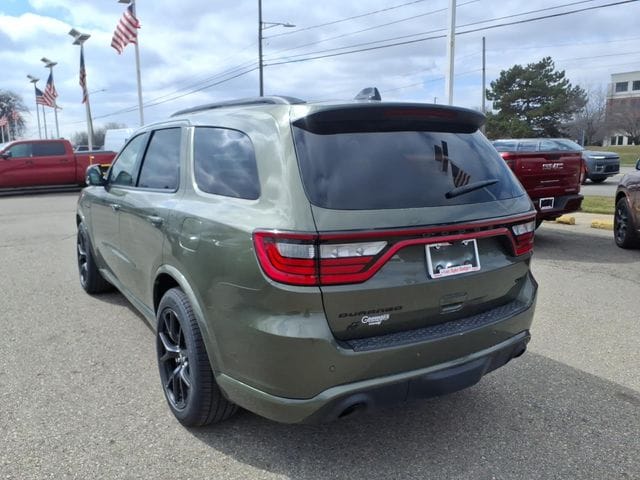 Green Machine 2026 Dodge Durango GT Plus HEMI V8 AWD 8-Speed Automatic HEMI 5.7L V8 Multi Displacement VVT 115V Auxiliary Power Outlet, 160 Mph Primary Speedometer, 3.09 Rear Axle Ratio, 3rd row seats: split-bench, 4-Wheel Disc Brakes, 7 and 4 Pin Wiring Harness, 9 Speakers, ABS brakes, Active Noise Control System, Adaptive Cruise Control with Stop, Adaptive Damping, Air Conditioning, Alloy wheels, AM/FM radio: SiriusXM w/360L, Apple CarPlay/Android Auto, Auto High Beam Headlamp Control, Auto-Dimming Exterior Driver Mirror, Auto-dimming Rear-View mirror, Auto-leveling suspension, Automatic Headlamp Leveling System, Automatic temperature control, Black Brake Calipers, Black Roof Rails, Blacktop Package, Blind Spot with Trailer Detection, Body Color Upper and Lower Rear Fascia, Brake assist, Brembo Brakes, Bumpers: body-color, Class IV Receiver Hitch, Cloth Bucket Seats with Shift Insert, Compass, Delay-off headlights, Drive Modes - Sport/Track/Tow/Snow, Driver door bin, Driver vanity mirror, Dual front impact airbags, Dual front side impact airbags, Dual Remote USB Port - Charge Only, Electronic Limited Slip Differential Rear Axle, Electronic Stability Control, Emergency communication system: Dodge Connect, Exterior Mirrors with Heating Element, Exterior Mirrors with Memory, Exterior Mirrors with Supplemental Signals, Floor Console with Leather Armrest, Four wheel independent suspension, Front anti-roll bar, Front Bucket Seats, Front Center Armrest w/Storage, Front dual zone A/C, Front reading lights, Full Speed Forward Collision Warning Plus, Fully automatic headlights, Garage door transmitter, Gloss Black Badges, Gloss Black Exterior Mirrors, Heated door mirrors, Heated front seats, Heated Second Row Seats, Heated steering wheel, High Performance Exhaust, High Performance Suspension, Illuminated entry, Integrated Roof Rail Crossbars, Knee airbag, Leather steering wheel, Leather Trimmed Bucket Seats, Leather Wrapped Door Panels, LED Auxiliary Low Beam and Turn Signal, Low tire pressure warning, Navigation System, Occupant sensing airbag, Outside temperature display, Overhead airbag, Overhead console, Panic alarm, ParkView Rear Back-Up Camera, Passenger door bin, Passenger vanity mirror, Performance Tuned Steering, Power 6x9 Multi-Function Foldaway Mirrors, Power 8-Way Driver Memory 8-Way Passenger Seats, Power door mirrors, Power driver seat, Power Driver/Passenger 4-Way Lumbar Adjust, Power Liftgate, Power steering, Power Sunroof, Power Tilt and Telescopic Steering Column, Power windows, Quadra-Trac Active on Demand 4WD, Quick Order Package 22T GT Plus, Radio data system, Radio: Uconnect 5 Nav with 10.1" Display, Radio/Driver Seat/Mirrors Memory, Rain sensing wipers, Rear air conditioning, Rear anti-roll bar, Rear Load Leveling Suspension, Rear reading lights, Rear seat center armrest, Rear window defroster, Rear window wiper, Red Accent Stitching, Remote keyless entry, Run Flat Tires, Satin Black Dodge Tail Lamp Badge, Security system, Speed control, Speed-sensing steering, Speed-Sensitive Wipers, Split folding rear seat, Spoiler, Sport steering wheel, Steering wheel mounted audio controls, Tachometer, Telescoping steering wheel, Tilt steering wheel, Tow 'n Go Package, Traction control, Trailer Brake Control, Trip computer, Variably intermittent wipers, Ventilated Front Seats, Voltmeter, Wheels: 20" x 10" Forged Y-Spoke Satin Black, Wheels: 20" x 8" Satin Carbon Split 5-Spoke.