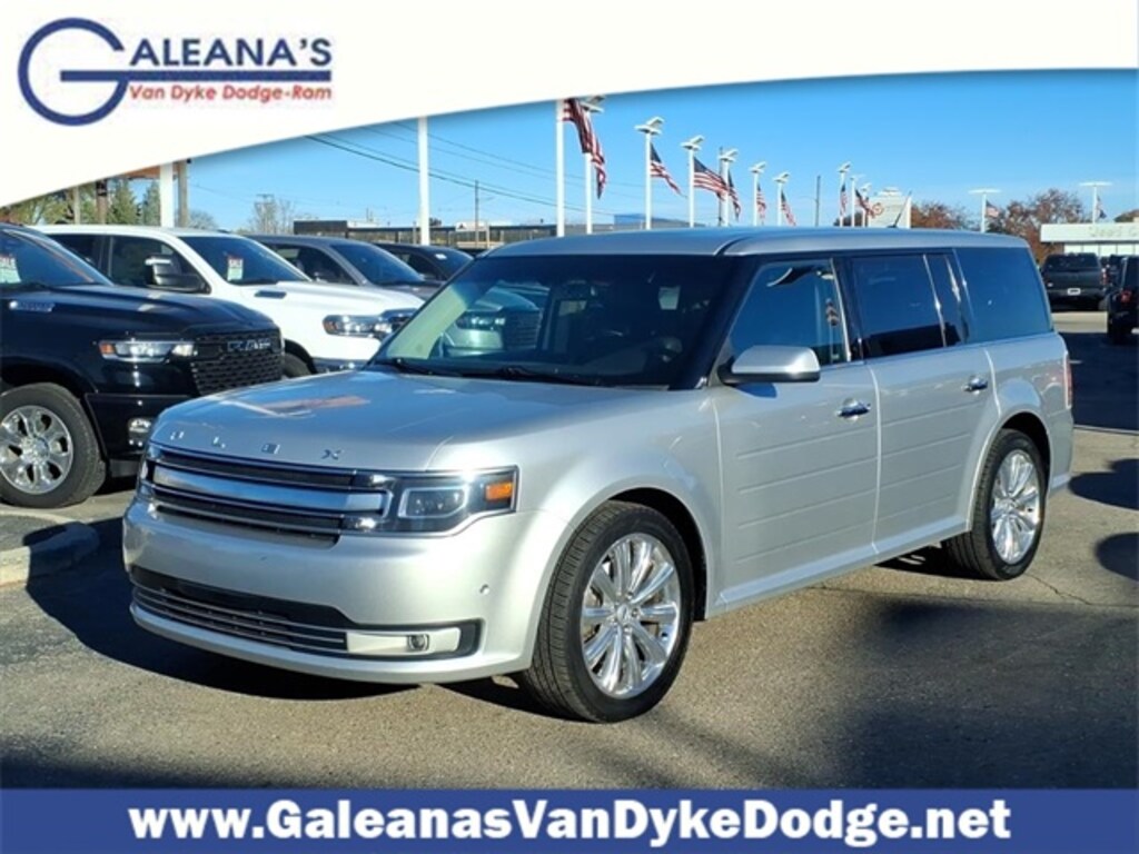 Ingot Silver 2017 Ford Flex Limited 3.5L V6 6-Speed Automatic with Select-Shift AWD AWD, 1-Touch PowerFold & Tumble 3rd Row Fold Flat Bench, 10-Way Power Heated Cooled Driver/Passenger Seat, 12 Speakers, 1st & 2nd Row All-Weather Floor Mats, 20" Polished Aluminum Wheels, 3.16 Axle Ratio, 3rd row seats: split-bench, 4-Wheel Disc Brakes, ABS brakes, Active Park Assist, Adaptive Cruise Control w/Collision Warning, Adjustable pedals, Air Conditioning, Alloy wheels, AM/FM radio: SiriusXM, Auto-dimming Rear-View mirror, Automatic temperature control, Brake assist, Bumpers: body-color, CD player, Class III Trailer Towing Package, Compass, Delay-off headlights, Driver door bin, Driver vanity mirror, Dual front impact airbags, Dual front side impact airbags, Electronic Stability Control, Emergency communication system: SYNC 3 911 Assist, Engine Oil Cooler, Equipment Group 303A, Exterior Parking Camera Rear, Four wheel independent suspension, Front anti-roll bar, Front Bucket Seats, Front Center Armrest, Front dual zone A/C, Front fog lights, Front reading lights, Fully automatic headlights, Garage door transmitter, Heated door mirrors, Heated front seats, Heated Steering Wheel, High-Intensity Discharge Headlights, Illuminated entry, Leather steering wheel, Low tire pressure warning, Memory seat, Monochromatic Painted Roof, Multi-Panel Vista Roof, Navigation System, Occupant sensing airbag, Outside temperature display, Overhead airbag, Overhead console, Panic alarm, Passenger door bin, Passenger vanity mirror, Pedal memory, Perforated Leather 2nd Row Heated Reclining Seats, Perforated Leather-Trimmed Bucket Seats, Power door mirrors, Power driver seat, Power Liftgate, Power passenger seat, Power steering, Power Tilt & Telescopic Steering Column, Power windows, Premium audio system: Sony, Radio data system, Radio: AM/FM/HD Single CD/MP3 Capable, Rain sensing wipers, Rear air conditioning, Rear anti-roll bar, Rear Parking Sensors, Rear reading lights, Rear seat center armrest, Rear window defroster, Rear window wiper, Remote keyless entry, Security system, Speed control, Speed-Sensitive Wipers, Split folding rear seat, Steering wheel mounted audio controls, SYNC 3, Tachometer, Telescoping steering wheel, Tilt steering wheel, Traction control, Trip computer, Variably intermittent wipers, AWD.