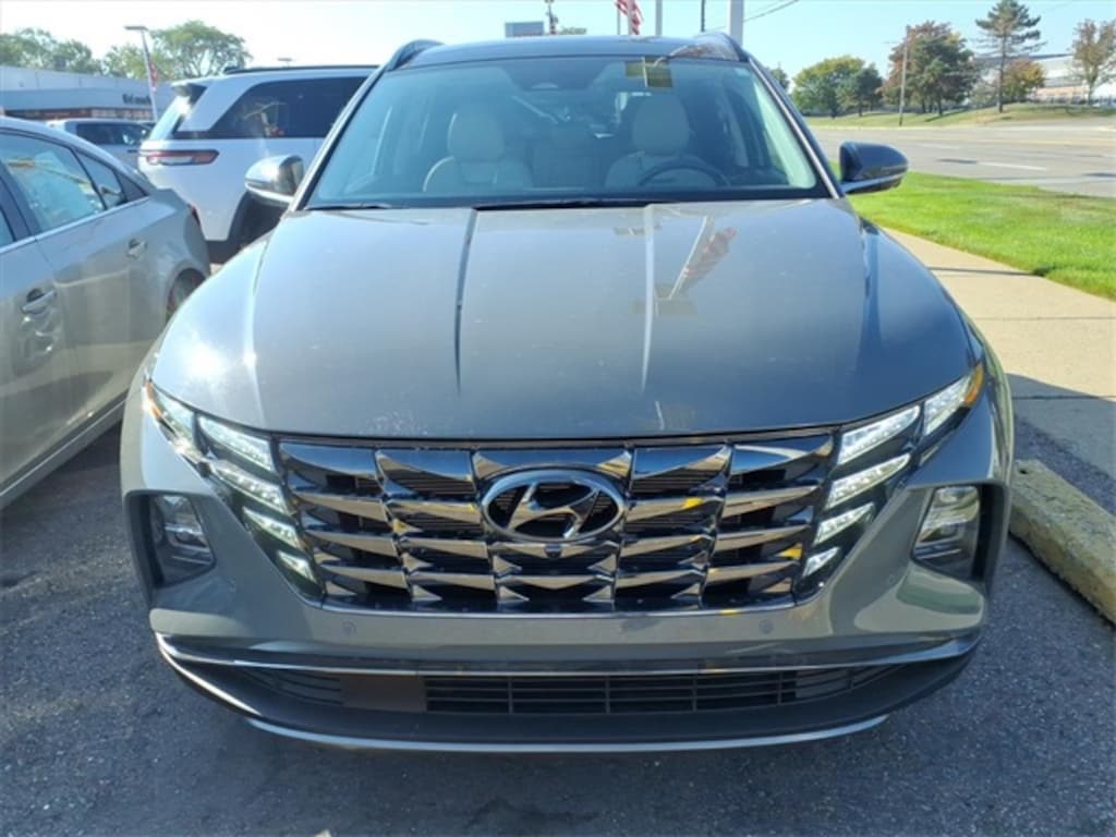 Clean CARFAX. Hampton Gray 2024 Hyundai Tucson Limited FWD 8-Speed Automatic with SHIFTRONIC 2.5L I4 DGI DOHC 16V LEV3-SULEV30 187hp 3.648 Axle Ratio, 4-Wheel Disc Brakes, 8 Speakers, ABS brakes, Air Conditioning, All Season Fitted Liners, Alloy wheels, AM/FM radio: SiriusXM, Apple CarPlay & Android Auto, Auto High-beam Headlights, Auto-dimming Rear-View mirror, Automatic temperature control, Brake assist, Bumpers: body-color, Cargo Cover, Cargo Net, Cargo Tray, Carpeted Floor Mats, Delay-off headlights, Driver door bin, Driver vanity mirror, Dual front impact airbags, Dual front side impact airbags, Electronic Stability Control, Emergency communication system: Blue Link Connected Car Service (3-year complimentary subscription), Exterior Parking Camera Rear, First Aid Kit, Four wheel independent suspension, Front and Rear Mudguards, Front anti-roll bar, Front Bucket Seats, Front Center Armrest, Front dual zone A/C, Front reading lights, Fully automatic headlights, Garage door transmitter: HomeLink, Heated & Ventilated Front Bucket Seats, Heated door mirrors, Heated front seats, Heated rear seats, Heated steering wheel, Illuminated entry, Leather Seat Trim, Low tire pressure warning, Memory seat, Navigation System, Occupant sensing airbag, Option Group 01, Outside temperature display, Overhead airbag, Overhead console, Panic alarm, Passenger door bin, Passenger vanity mirror, Power door mirrors, Power driver seat, Power Liftgate, Power moonroof, Power passenger seat, Power steering, Power windows, Radio data system, Radio: Bose Premium w/AM/FM/HD Audio System, Rain sensing wipers, Rear anti-roll bar, Rear reading lights, Rear seat center armrest, Rear side impact airbag, Rear window defroster, Rear window wiper, Remote keyless entry, Roof rack: rails only, Security system, Speed control, Split folding rear seat, Spoiler, Steering wheel mounted audio controls, Tachometer, Telescoping steering wheel, Tilt steering wheel, Traction control, Trip computer, Turn signal indicator mirrors, Variably intermittent wipers, Ventilated front seats, Wheels: 19" x 7.5J" Machine-Face Finish Alloy.