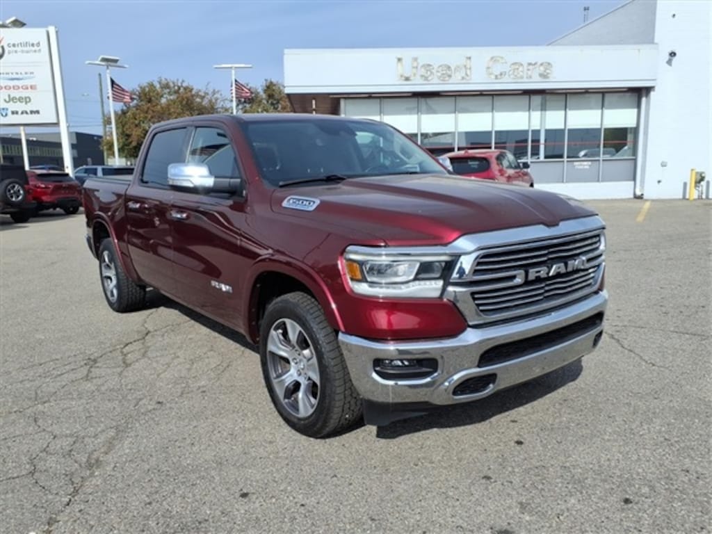 CARFAX One-Owner. Delmonico Red Pearlcoat 2022 Ram 1500 Laramie 4WD 8-Speed Automatic HEMI 5.7L V8 Multi Displacement VVT #1 Seat Foam Cushion, 10 Speakers, 2nd Row In Floor Storage Bins, 3 Rear Seat Head Restraints, 3.21 Rear Axle Ratio, 4 Way Front Headrests, 4-Wheel Disc Brakes, 48V Belt Starter Generator, 4G LTE Wi-Fi Hot Spot, 8.4" Touchscreen Display, ABS brakes, Adjustable pedals, Air Conditioning, Alloy wheels, AM/FM radio: SiriusXM, Apple CarPlay, Apple CarPlay/Android Auto, Audio memory, Auto-dimming door mirrors, Auto-Dimming Exterior Driver Mirror, Auto-dimming Rear-View mirror, Automatic temperature control, Brake assist, Bumpers: chrome, Chrome Exterior Mirrors, Compass, Connectivity - US/Canada, Convex Wide-Angle Mirror Insert, Delay-off headlights, Driver door bin, Driver Seat Memory, Driver vanity mirror, Dual front impact airbags, Dual front side impact airbags, Electronic Stability Control, Exterior Mirrors Courtesy Lamps, Exterior Mirrors w/Heating Element, Exterior Mirrors w/Memory, Exterior Mirrors w/Supplemental Signals, For Details, Visit DriveUconnect.com, Front anti-roll bar, Front Center Armrest w/Storage, Front dual zone A/C, Front fog lights, Front reading lights, Front Seat Back Map Pockets, Front wheel independent suspension, Fully automatic headlights, Garage door transmitter, Global Telematics Box Module (TBM), Google Android Auto, GPS Antenna Input, Heated door mirrors, Heated Front Seats, Heated front seats, Heated Steering Wheel, Heated steering wheel, Heavy-Duty Engine Cooling, Illuminated entry, Integrated Center Stack Radio, Leather steering wheel, Leather Trim 40/20/40 Bench Seat, Low tire pressure warning, Manufacturer's Statement of Origin, Memory seat, MOPAR Front & Rear Rubber Floor Mats, Occupant sensing airbag, Outside temperature display, Overhead airbag, Overhead console, Panic alarm, ParkView Rear Back-Up Camera, Passenger door bin, Passenger vanity mirror, Pedal memory, Power 2-Way Driver Lumbar Adjust, Power 2-Way Passenger Lumbar Adjust, Power 8-Way Driver & Passenger Seats, Power door mirrors, Power driver seat, Power passenger seat, Power steering, Power windows, Power-Folding Mirrors, Quick Order Package 27H Laramie, Radio data system, Radio: Uconnect 5 W w/8.4" Display, Rear 60/40 Folding Seat, Rear anti-roll bar, Rear seat center armrest, Rear step bumper, Rear window defroster, Remote keyless entry, Security system, SiriusXM Radio Service, Speed control, Split folding rear seat, Steering wheel mounted audio controls, Tachometer, Telescoping steering wheel, Tilt steering wheel, Traction control, Trip computer, Turn signal indicator mirrors, Variably intermittent wipers, Ventilated Front Seats, Ventilated front seats, Voltmeter, Wheels: 18" x 8" Aluminum Base Painted, Wheels: 20" x 9" Premium Paint/Polished.
